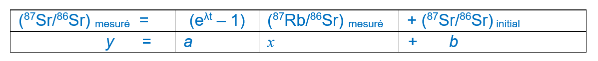 Dans la démarche pédagogique décrite dans cet article, les intentions d’explicitation et de clarification ont parfois amené à aller au-delà des attendus du programme. Il faut donc bien garder en tête que si les chemins empruntés peuvent contribuer à favoriser la compréhension de la méthode Rb-Sr par les élèves, ils ne correspondent pas forcément à des connaissances exigibles (en tous cas, pas à celles attendues pour le baccalauréat).