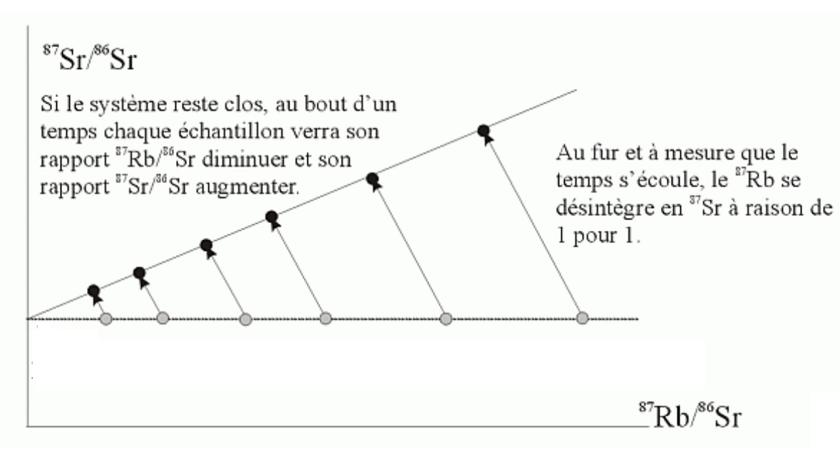 Elément père, élément fils, radioactif, radiogénique, chronomètre, désintégration, droite isochrone, demi-vie, calculs